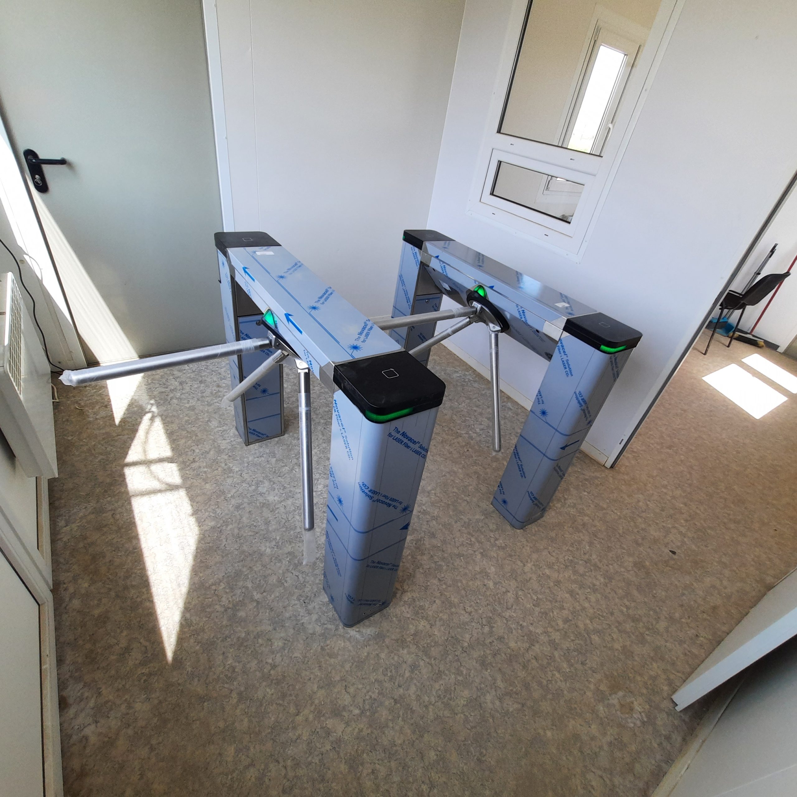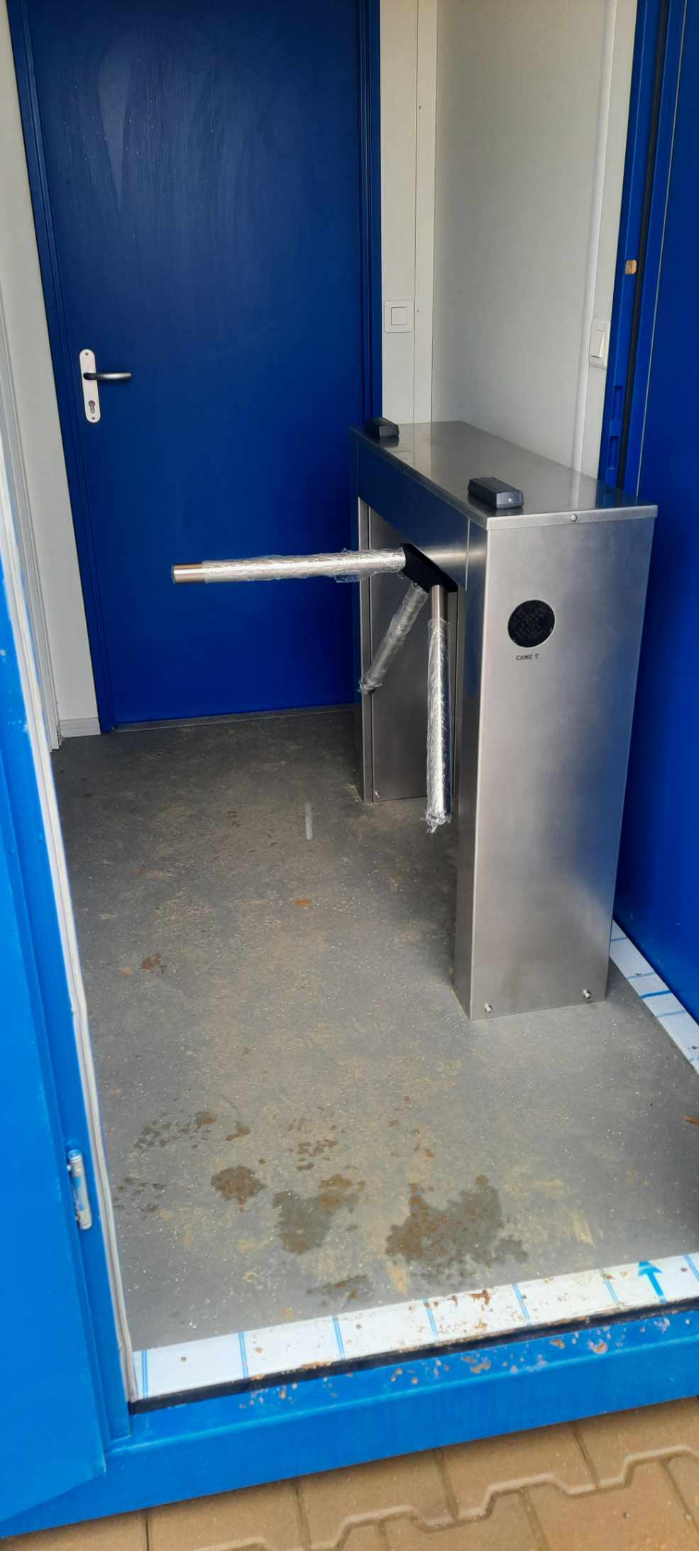 Wszechstronność - urządzenie jest przeznaczone do zabudowy w kontenerze stróżówce umożliwiającym przejście przez kontener na teren placu budowy. W zależności od szerokości przejścia dostosowujemy liczbę tripodów, lub stosujemy dodatkowe wygrodzenia.